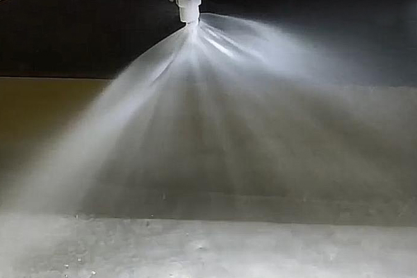 2021.6.3 礦山石料破碎除塵噴霧工程,深圳市鑫龍環(huán)保科技有限公司噴霧除塵(超聲霧化除塵)是最簡便和最經(jīng)濟的除塵方式,并且除塵效果良好。噴霧除塵是將水霧化處理成許多高速運動的密集細(xì)小水滴,是借助壓縮空氣沖擊共振腔產(chǎn)生的超聲波,利用超聲波將水霧處理成濃密的微細(xì)霧滴,這些微細(xì)霧滴在相對密閉的空間內(nèi)可以捕獲、凝聚微細(xì)粉塵,使得微細(xì)粉塵的黏性、濕度和比重顯著增加,進而使得粉塵迅速沉降下來,逐漸實現(xiàn)除塵的目的。